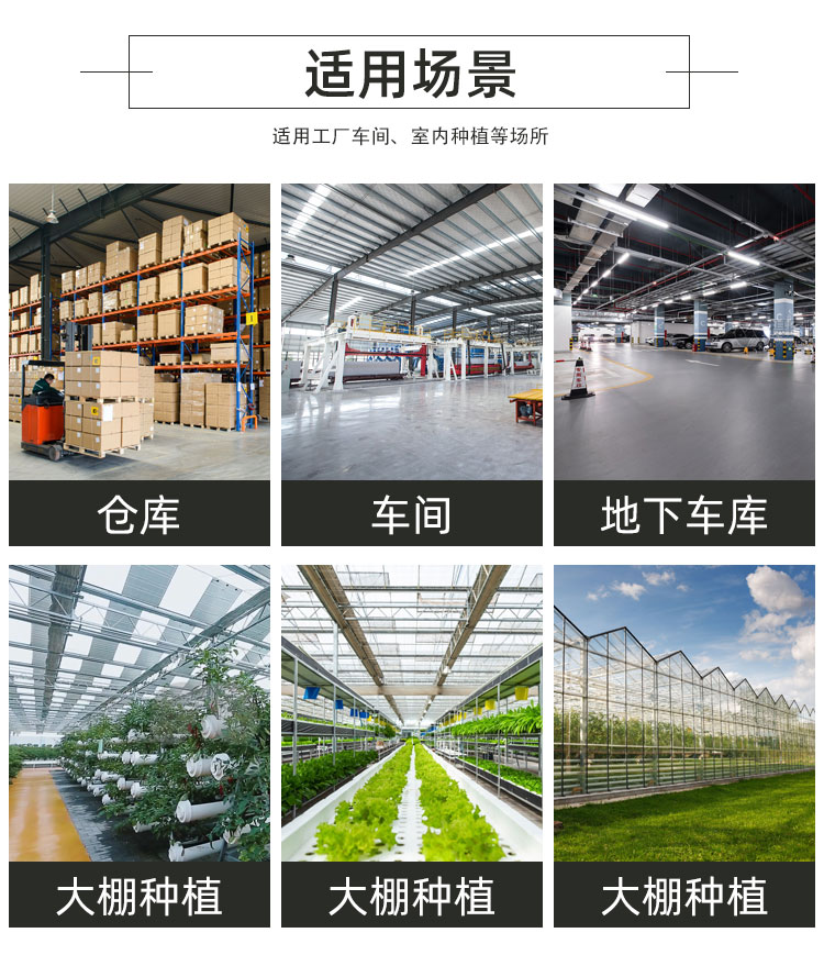 适用场景:室内种植、地下车库、储存仓库、工厂车间等场所。